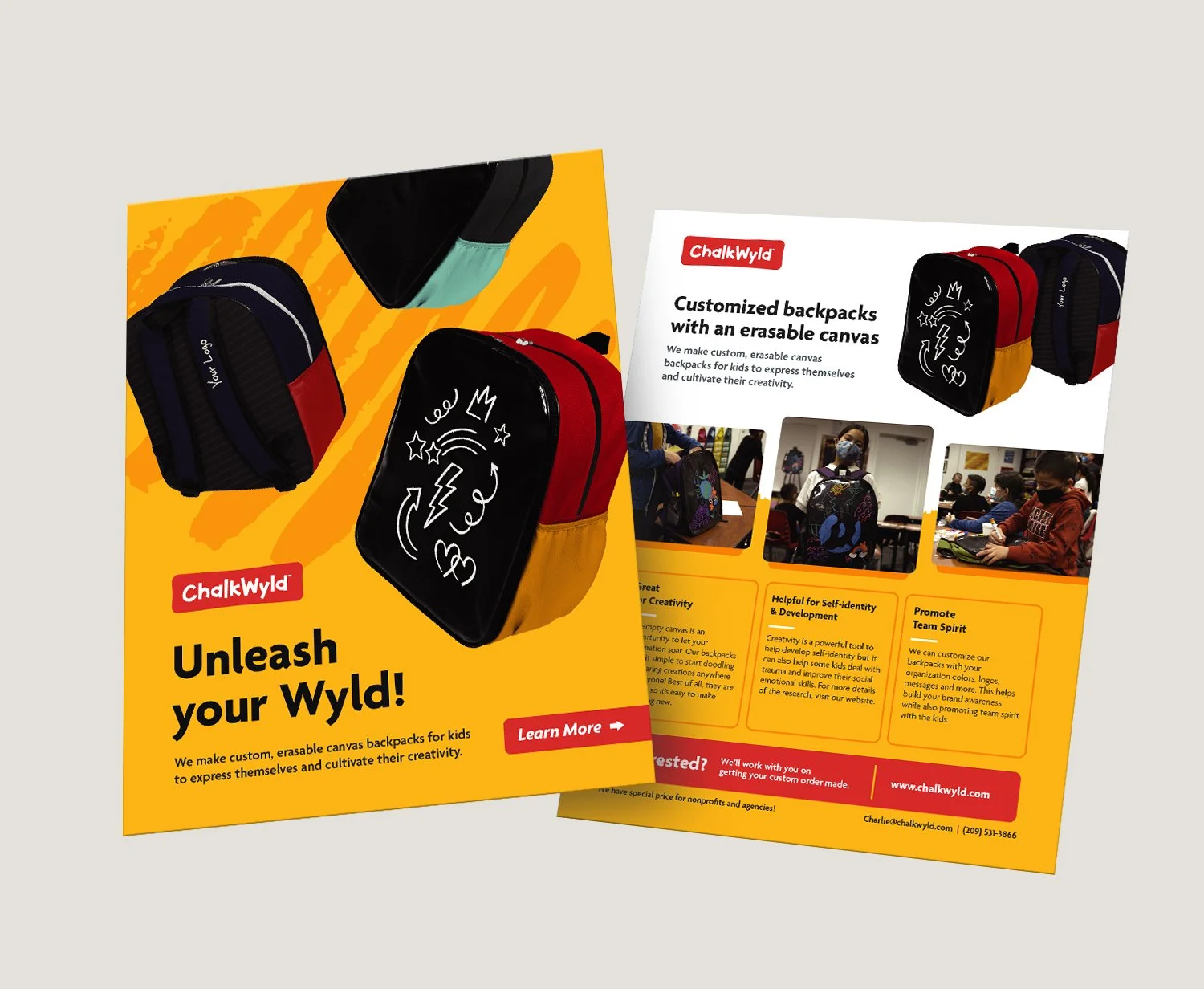 ChalkWyld makes custom, erasable canvas backpacks for kids to express themselves and cultivate their creativity. Each one is made to order and every element can be designed, making it a perfect way to share school, team, or personal spirit.